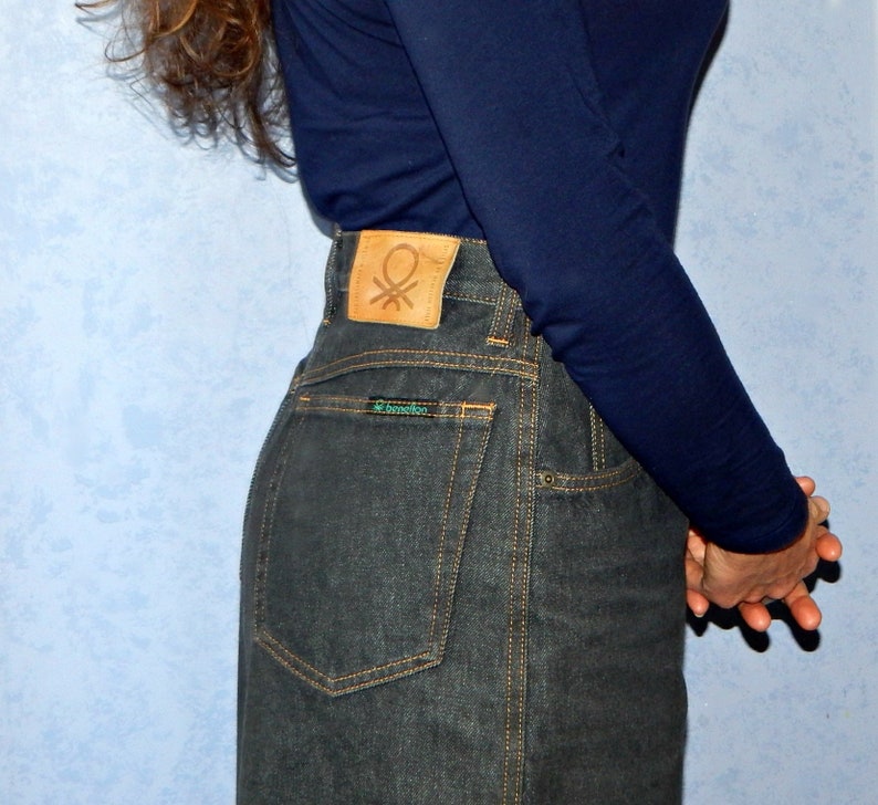 Vintage Benetton Italy Denim Pencil Skirt Size 44 8 10 Etsy